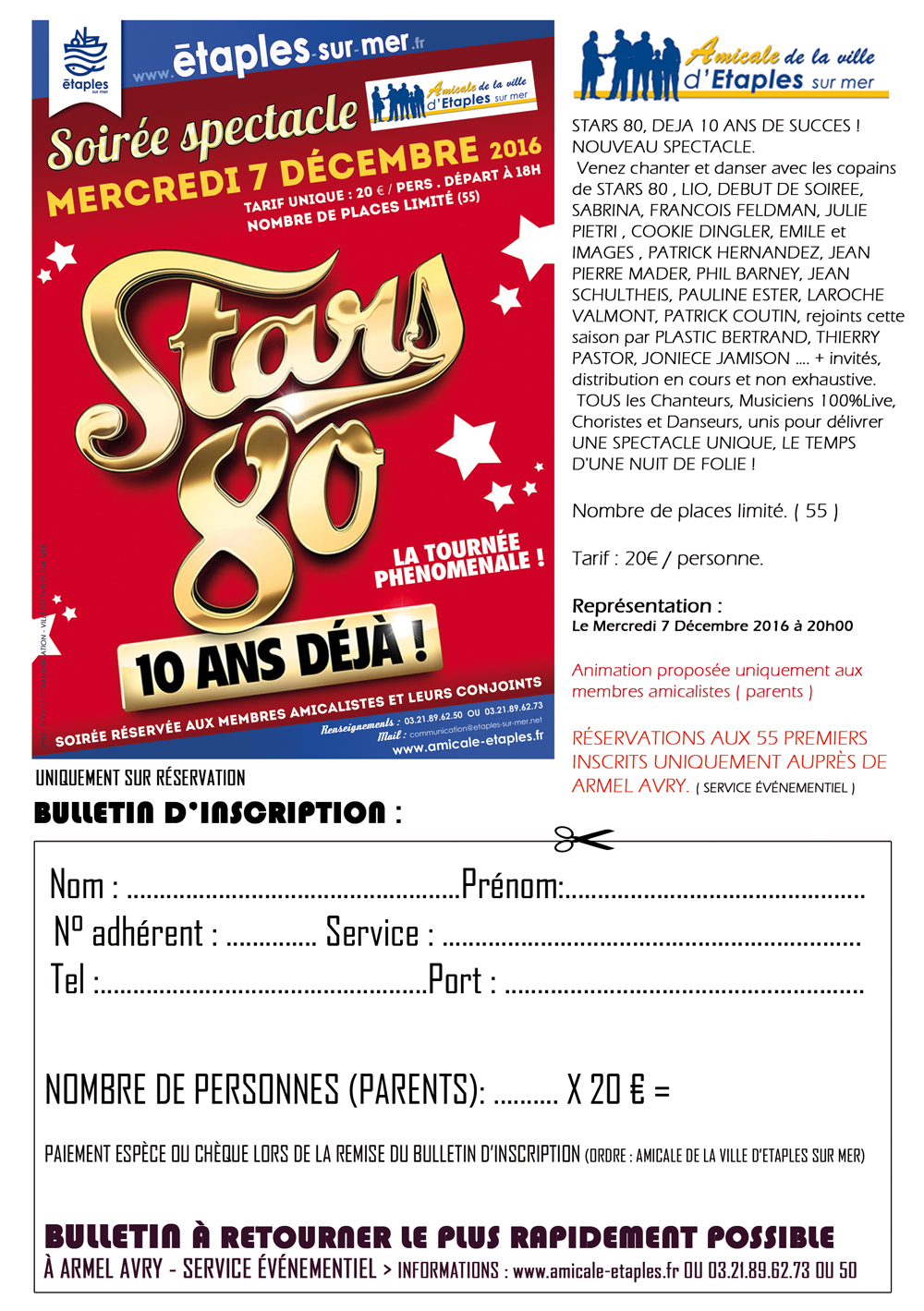 Soirée Spectacle « Stars 80, 10 ans déjà ! »