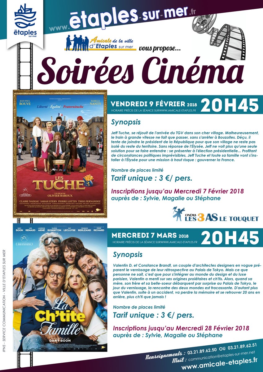 Deux séances sont programmées prochainement durant le mois de Février et Mars 2018 avec deux films « Comédie » pour toute la famille !