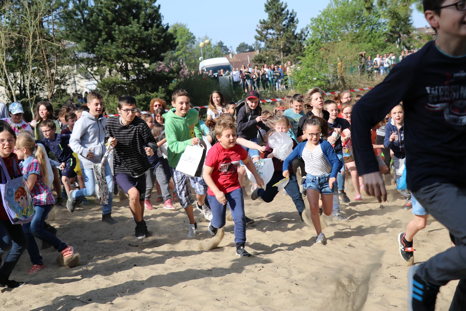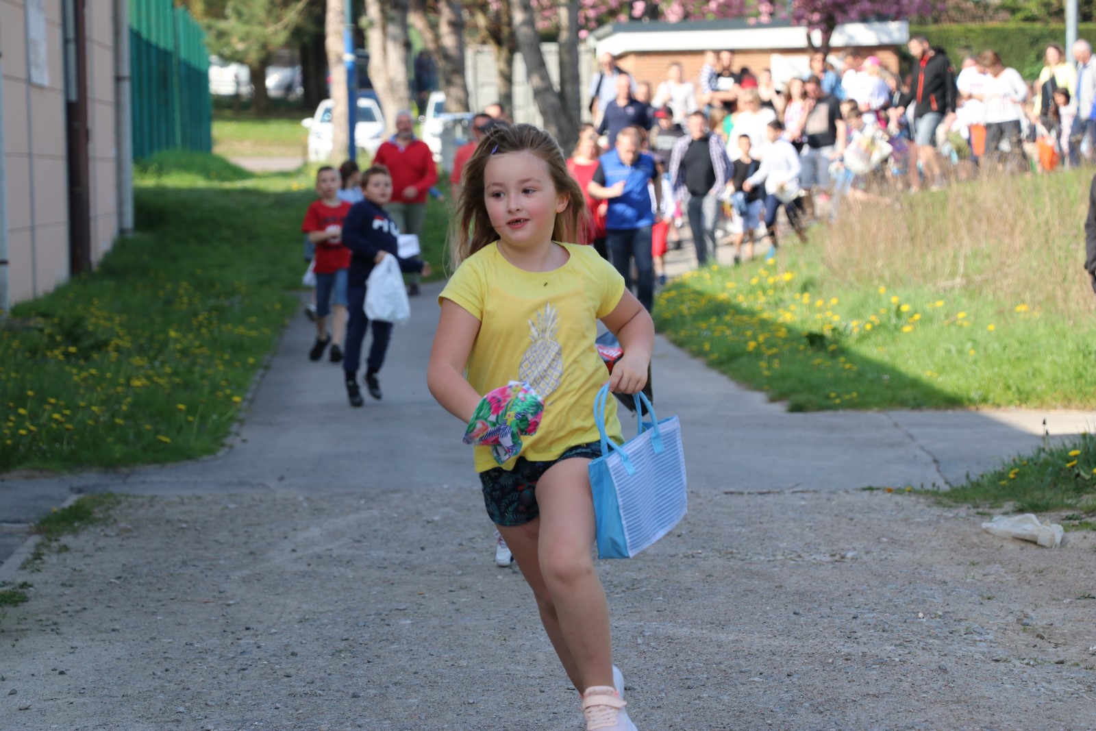 Dans un premier temps c’est la chasse aux œufs des plus petits qui donne le coup d’envoi de la collecte des chocolats. Encadrés par les bénévoles et les élus municipaux, les enfants, dans un élan bien décidé, s’aventurent librement dans un espace clos où chacun organise sa fouille pour ramasser le plus de provisions. Ensuite, c’était au tour des plus de 6 ans de s’aligner au point de départ d’une seconde chasse dans un espace beaucoup plus vaste où les cachettes sont très nombreuses. Il fallait bien fouiller et avoir le sens de l’observation pour dénicher toutes les poules, lapins et œufs en chocolat que les cloches ont déposé durant la nuit ! Au pas de course, les sentiers sont pris d’assaut et rapidement les besaces se sont remplies de belles victuailles.