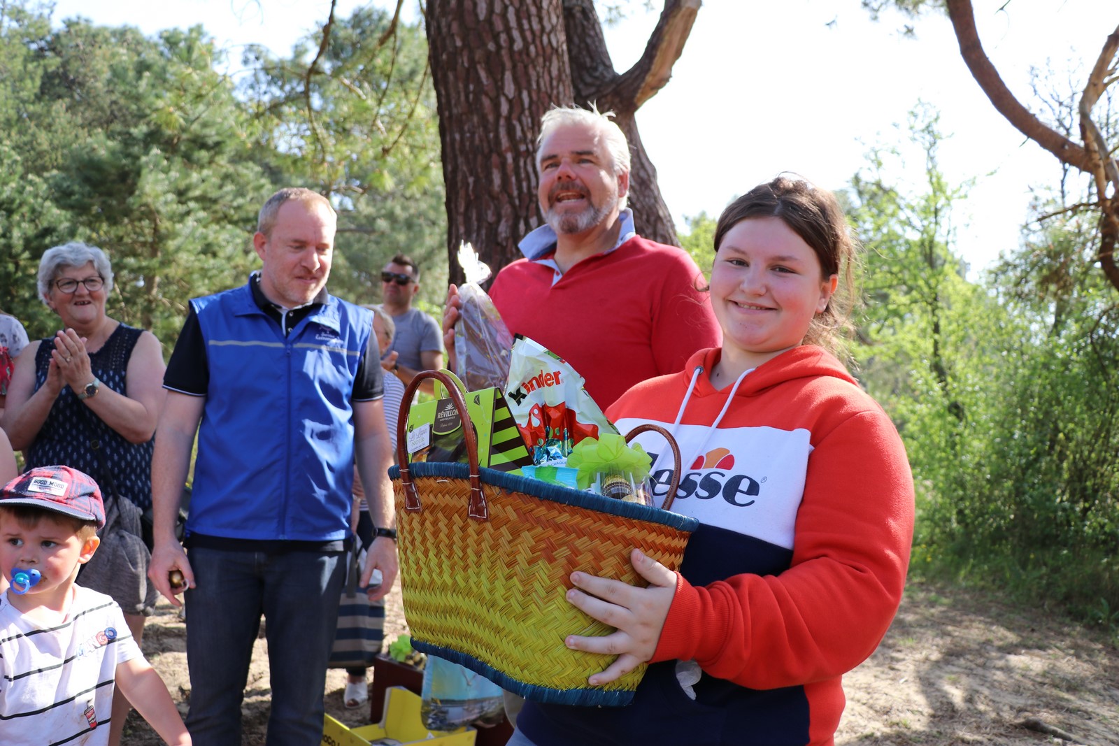 Pour conclure la matinée, c’est à la chasse à l’œuf d’or et aux œufs d’argent que les familles ont participé pour tenter de dénicher l’un d’entre eux en suivant un parcours semé d’embuches et de petites énigmes où il fallait être doté d’un bon sens de l’observation pour s’y retrouver ! Après une demi d’heure à parcourir l’espace boisé, trois enfants ont fini par trouver ces petits trésors qui permettaient de remporter de beaux paniers garnis. Il s’agit de Faustine, Angèle et Canelle qui ont été félicité pour leur réussite.