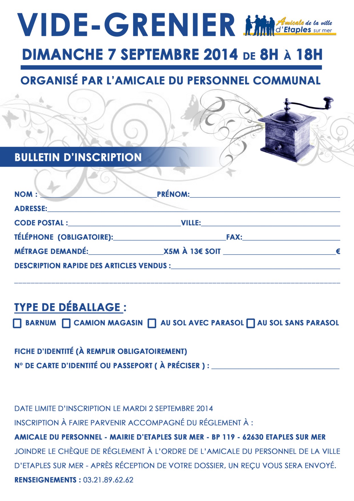 Inscription à faire parvenir accompagné du règlement à l’ordre de l’amicale du personnel de la ville d’etaples sur mer.