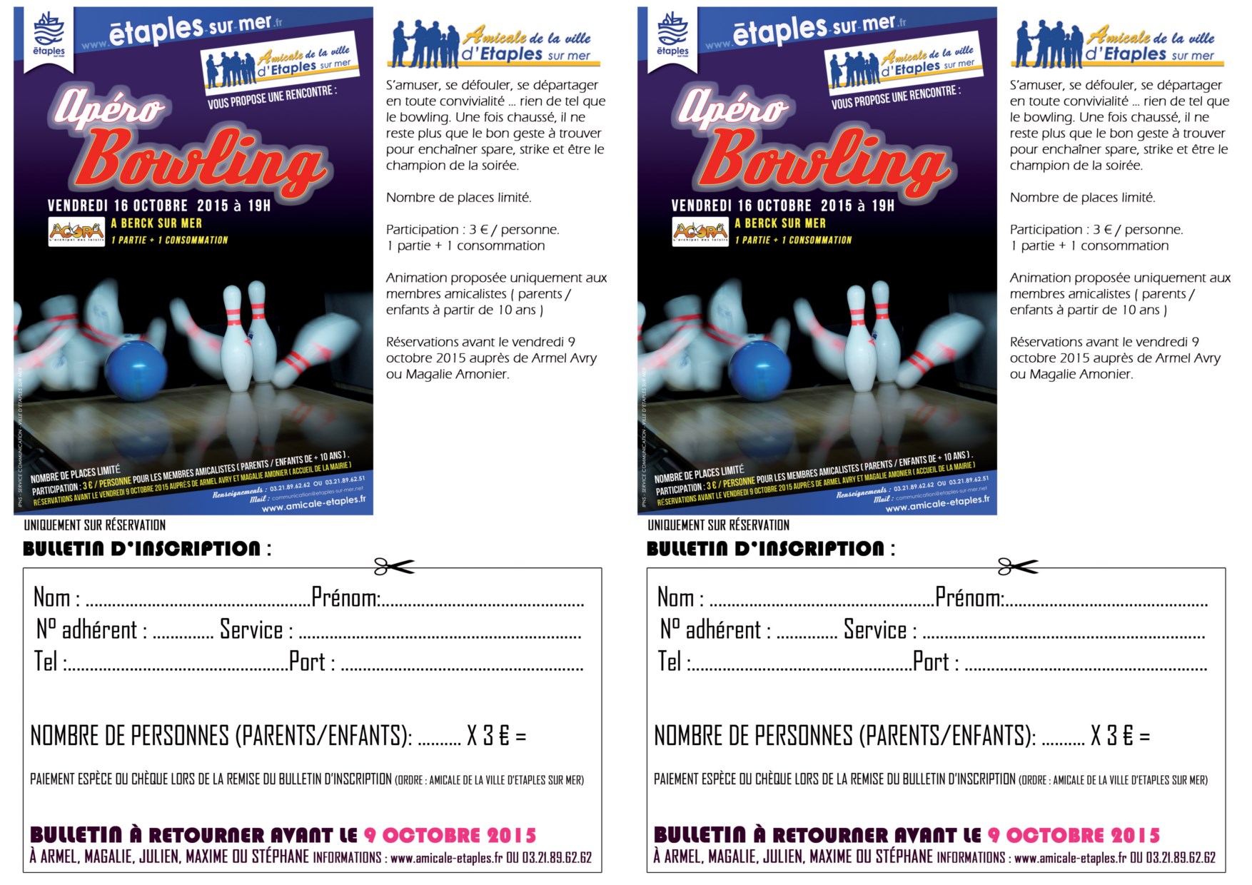 Réservations avant le Vendredi 9 Octobre 2015 auprès de M. Amerl Avry ou Mme Magalie Amonier.